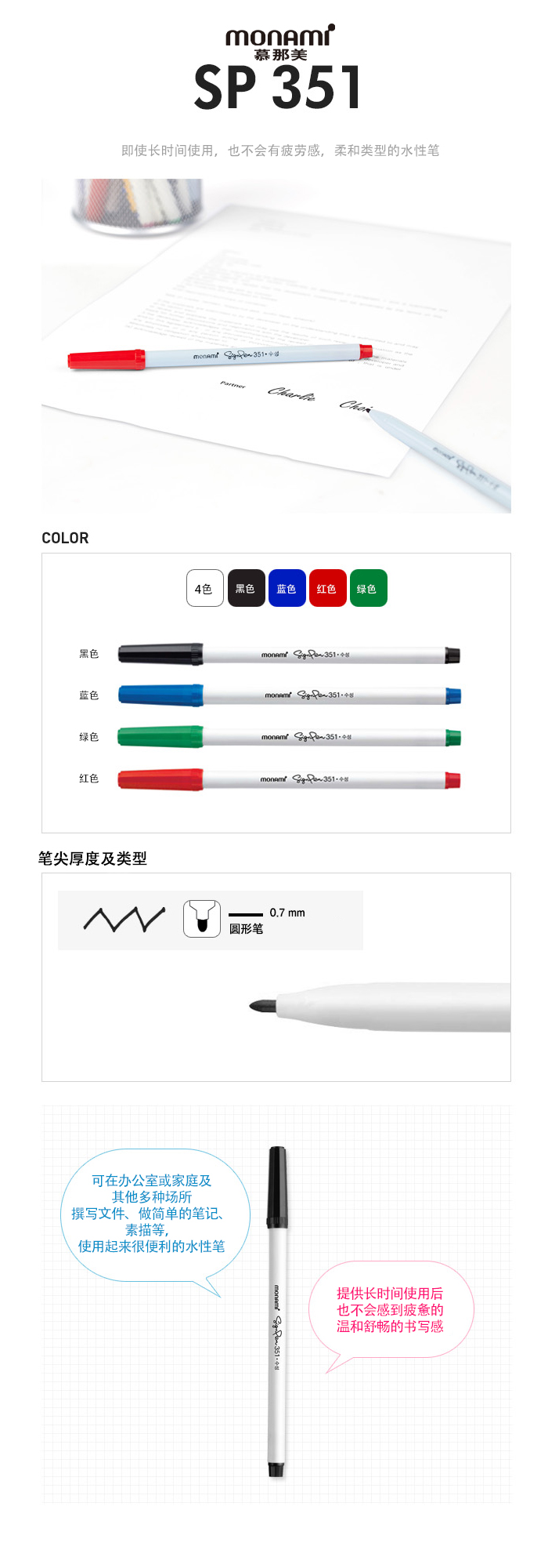 -柔软的书写感,长时间书写也不易疲劳
