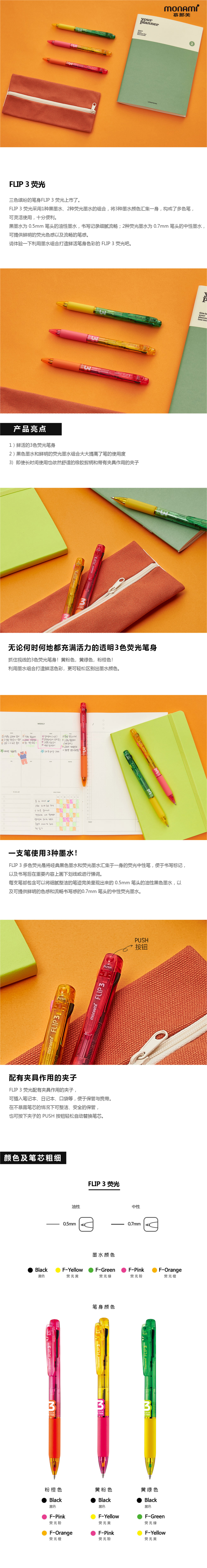 - 黑色油性墨水和鲜明的荧光中性墨水组合大大提高了笔的使用度